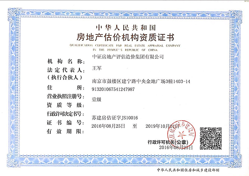 房地產(chǎn)價格評估資質(zhì)證書 2018-05-29 17:29:54