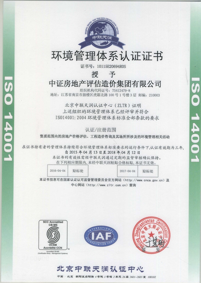 環(huán)境認(rèn)證證書(shū) 2018-05-29 17:39:05